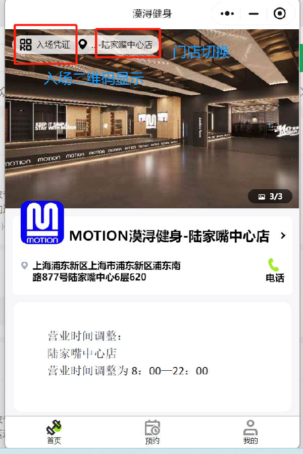 4.成功登录后,点首页,左上角气球修改要使用的门店的入场凭证;
