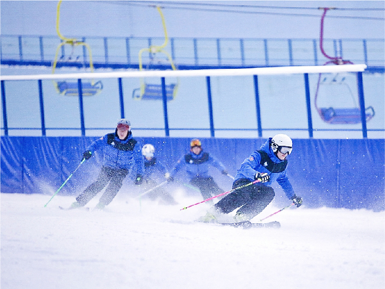 成都融创雪世界为室内滑雪场。雪世界为全球滑雪爱好者配备了6条不同等级的雪道(儿童)道1条、(初级)道2条、(初中级)道1条、(中级)道1条、(高级)道1条和2个地形公园,雪道总长度1200米,落差60米,坡度21°,全天可接待5000人滑雪。