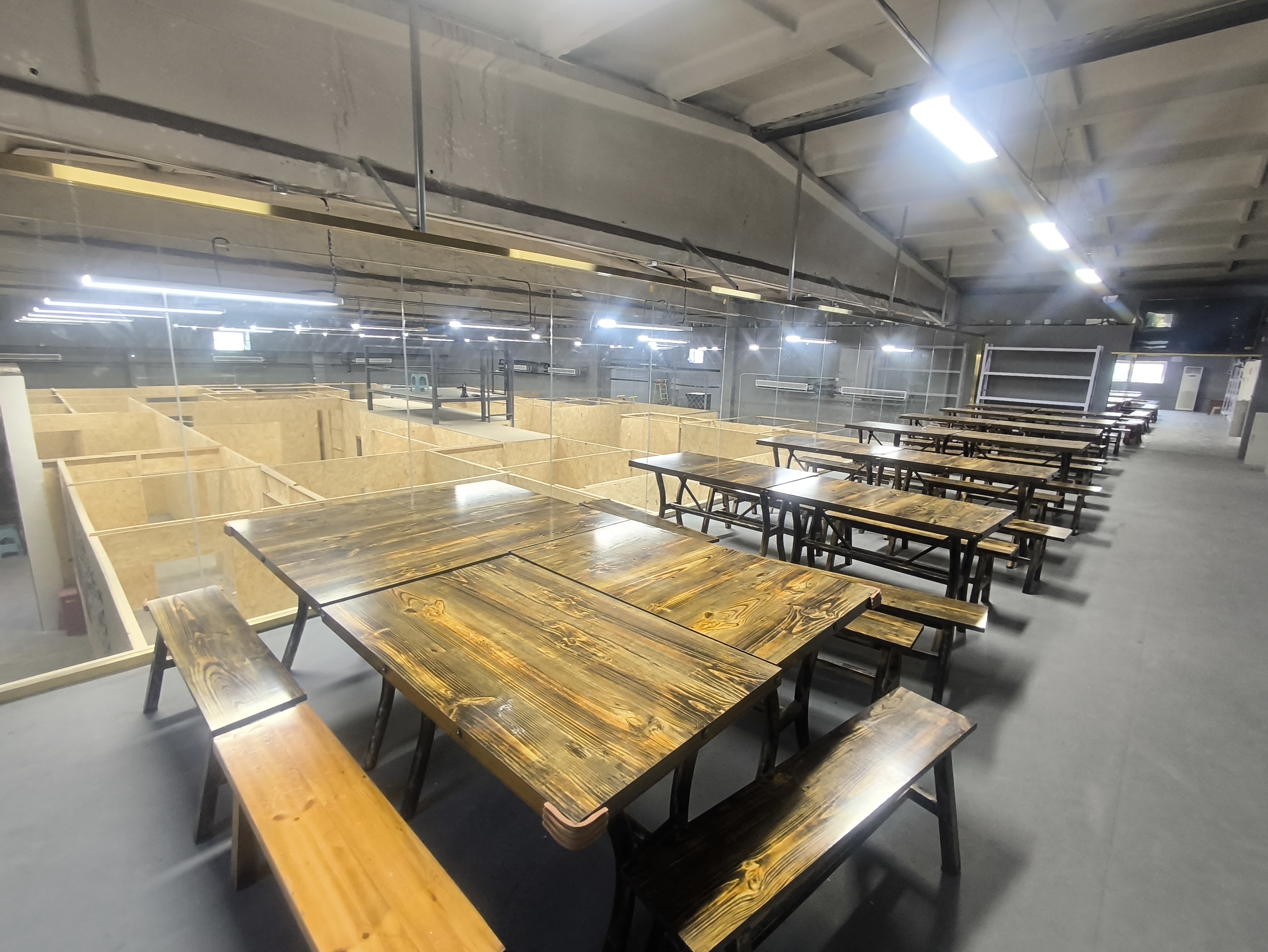 二层设置休息室,可放置物品、整备休息,休息室侧面为透明玻璃,可俯视室内CS场地。是非常适合父母关注孩子动向,或玩耍疲累的伙伴观察其他队友情况的地点;