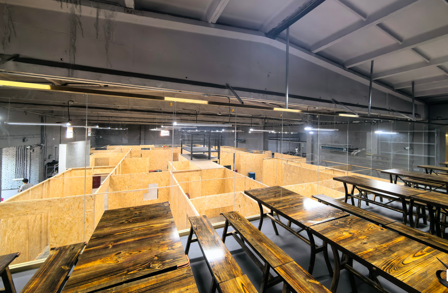 4.二层设置休息室,可放置物品、整备休息,休息室侧面为透明玻璃,可俯视室内CS场地。是非常适合父母关注孩子动向,或玩耍疲累的伙伴观察其他队友情况的地点;