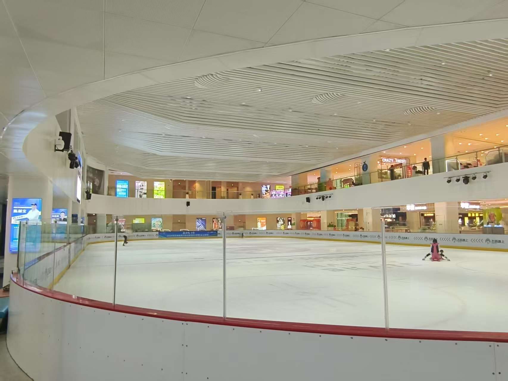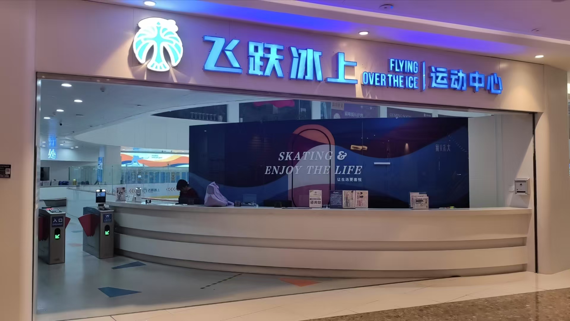 飞跃冰上运动中心是一家专注于培训花滑运动员、冰球运动员的真冰场馆,致力于为国家备战冬奥储备冰上人才。瑞鼎城悦容匯店场馆的冰面面积为1200㎡左右,可容纳 200人左右同时游玩,能满足不同冰上运动的需求。作为专业冰上运动场馆,其具备举办冰球、花样滑冰等各类冰上运动比赛的条件与能力。场馆内配备有专业的冰鞋租赁服务,提供各种尺码和类型的冰鞋,以适应不同年龄和水平的滑冰者。同时还设有休息区,供人们在滑冰间隙休息、更换衣物和补充能量。