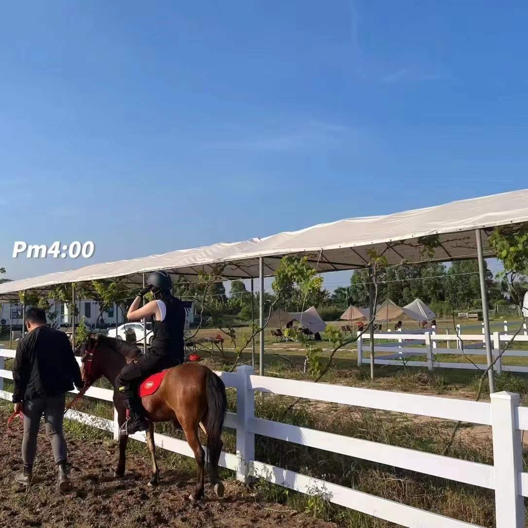 2、马场提供马术装备,请您穿着长裤及运动鞋入场,为确保安全,请勿穿着短裤或拖鞋。感谢您的理解和配合!